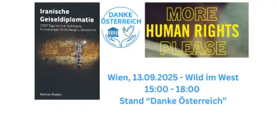 Am Samstag, 13. September 2025 bin ich mit meinem Buch und der von mir gegründeten Initiative „Danke Österreich“ beim Amnesty-Event „More Human Rights Please – Zusammen Wild im West“ in Wien vertreten.